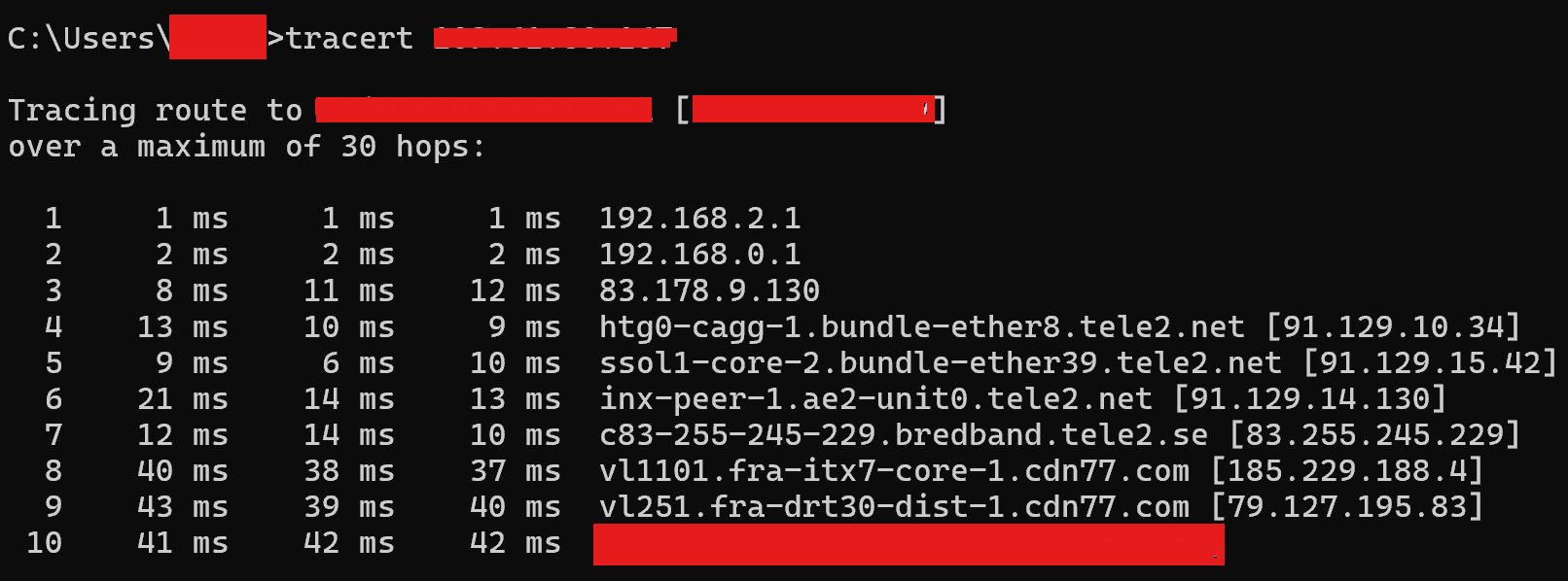 Copy the traceroute data and send it to us, either in our support tool or in our Discord.